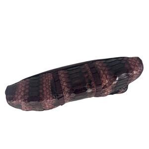 Crafted from genuine python skin, this luxurious clutch by LAI features a sleek silhouette with natural exotic texture and elegant structure. The magnetic flap closure opens to a lined interior with two slip pockets—perfect for organizing your evening essentials. A refined and striking accessory for formal occasions or elevated everyday wear.