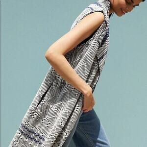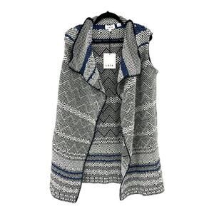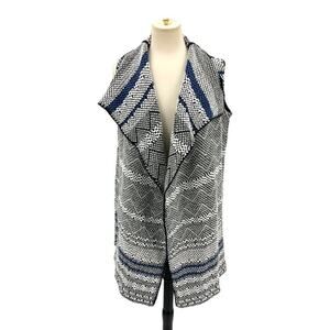LAIA Anthropologie Bendetta Knit Vest Size XS; From Anthropologie; long textured knit vest, open front, blue, black and white pattern.