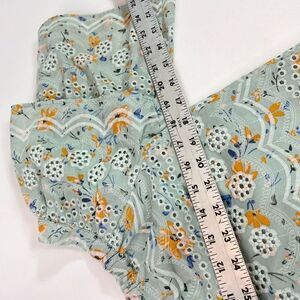 LAIA Tops Womens Small Green Floral Short-Sleeve Boat Neck Cotton Blouse Eyelet