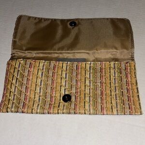 LAILA ROWE MULTI COLORED WOVEN STRAW CLUTCH SNAP CLOSURE ONE ZIP POCKET INSIDE