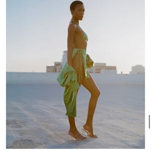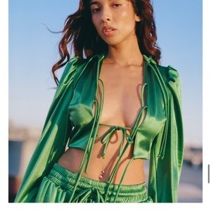 LAINA Rauma Pants Green S Small Satin Drawstring Pant Trouser Club Bed