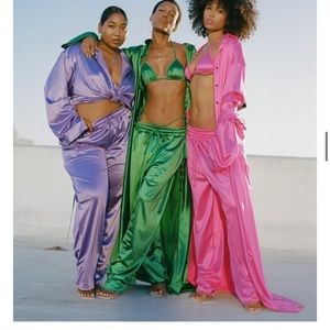 Laina Rauma Small Green Satin Drawstring Pants Club Bed