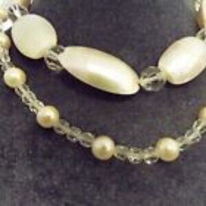 LAISE ADZER BOUTIQUE MOTHER OF PEARL OVOIDS CRYSTAL PEARLS 2 STRAND NECKLACE 63