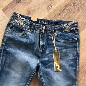 Discover comfort and style with L.A. idol's blue stretch jeans. Perfect for any occasion.New with tags very nice pair of jeans lots of detail. They may be missing a gem just seen It picture but not noticable