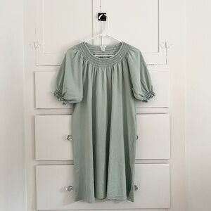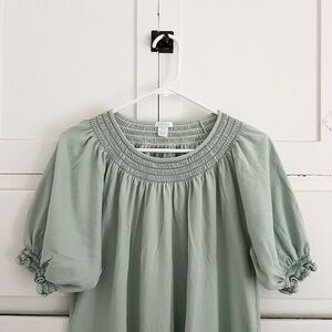 LAKE Pajamas 100% Pima Cotton Smocked Flutter Nightgown in Green Size Large