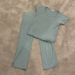 LAKE PAJAMA SET - Pima Short-Long Set in Stone Blue Boating Stripe Size Medium Like New No flaws Smoke and pet free home Both pants and top are size medium 100% Pima cotton Beautiful greenish blue color with white stripes Questions? Leave a comment below!