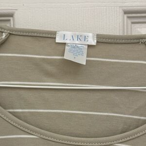 LAKE 100% Pima Cotton Pajama Shirt Size Small Tan Striped Scoop Neck Long Sleeve