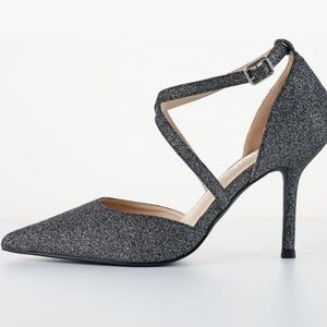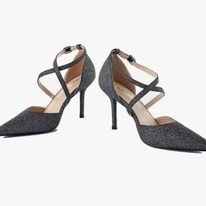 LALA IKAI Pointed Toe Glitter Pumps Strappy Cross Ankle High Heels Size 8