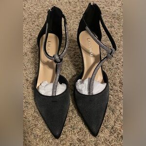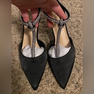 LALA IKAI T-Strap High Heels Closed Pointed Toe Stiletto Rhinestones Sz 7 (37.5)