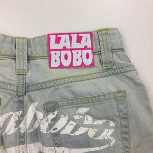 LALABOBO Distressed Large Logo Print Hi Waist Jean