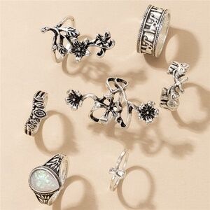**LALANA* 7-Pc Silver Elephant Fashion Ring Set