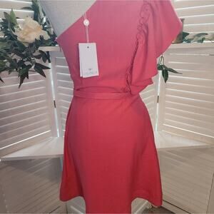 LALIBELA NEW VESTIDO CURTO BABADO EM FRESH PINK BELTED DRESS SIZE P/S RETAIL $500