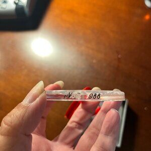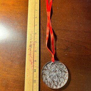 Authentic Christmas ornament by the famous French glassmaker René Lalique. It comes in the original Lalique Paris box with foam lining. The ornament is in excellent condition with no cracks or chips, however the black print on the edge that reads Noel 1998 is partly rubbed off (see photo). It comes with the original Lalique red hanging ribbon. The ornament measures approximately 2.5 in diameter.