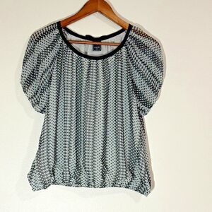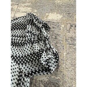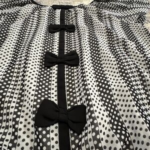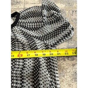 LALU Womens Top Blouse Medium Black Polka Dots Back Ribbon Shirt