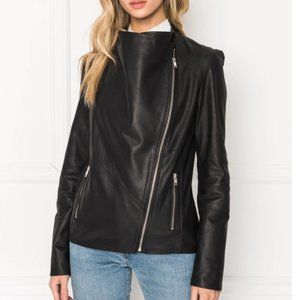 LAMARQUE Mira Drape Leather Jacket, XS Black NWT