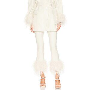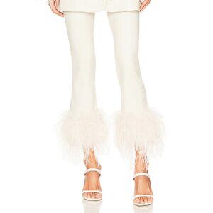 Step out in style with these elegant cream pants featuring a chic feather trim. Perfect for any occasion, these pants offer a sophisticated look.