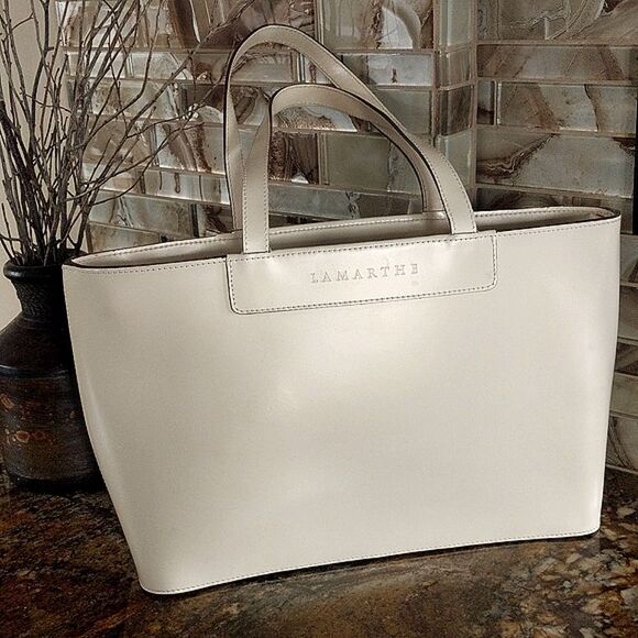LAMARTHE High Quality Italian Leather Cream Tote Handbag