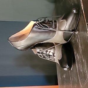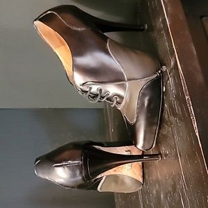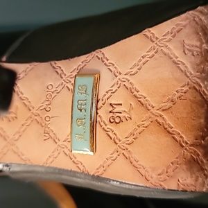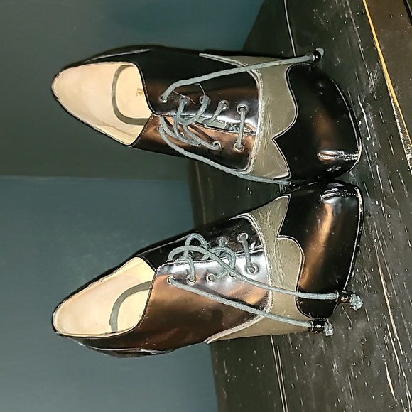 They are used the bottom of the soles are worn, the upper leather is in good condition a little bit of creasing. 2 tone green and black Mary Jane flare, pair them with fish net stockings or a romper . 4.1/2 " heel/ siletto not worn on top the leather is in good condition. I have not been able to find another pair this color.