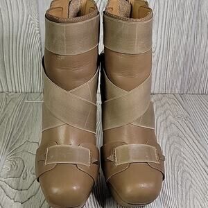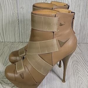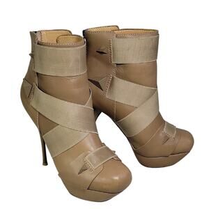 L.A.M.B. Bask Tan Leather Ankle Bootie Stiletto High Heels Womens Size 8.5