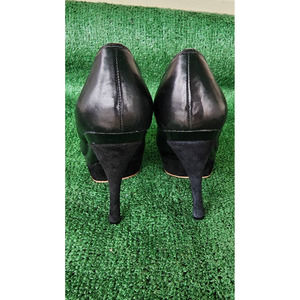 L.A.M.B. Black Leather Peeptoe Platform Pumps Genuine Leather Size 6.5