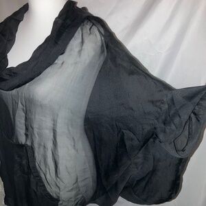 L.A.M.B. Black Sheer Drawstring Hem Hoodie Blouse