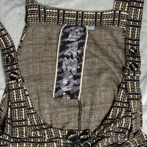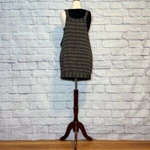 L.A.M.B. Black & Tan Wool Geometric Print Jumper Dress