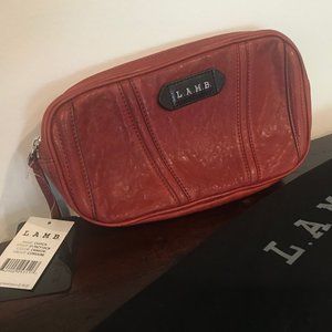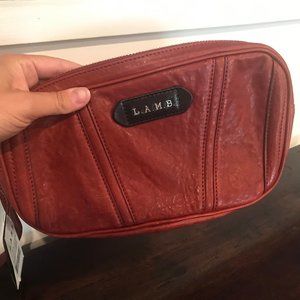 Rad red leather clutch bag in asymmetrical shape. Brand new with the tags and dust bag.