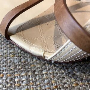 BEAUTIFUL Gently loved open toe unique wedge heel by L.A.M.B. All my items come from smoke,covid and pet free 🏡 Home! Bundle today to save on shipping .. Always accepting reasonable offers.. **Please note if submitting an offer at half of what the item is listed for it will be respectfully ignored!