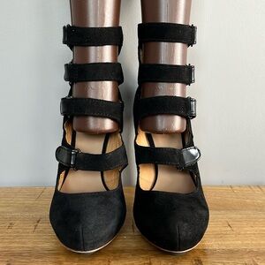 L.A.M.B Georgio Black Suede Velcro Closure Stiletto Platform Heels