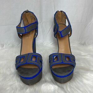 L.A.M.B. Grey/Blue Nubuck Platform Heels Sz 8
