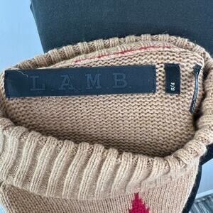 L.A.M.B Gwen Stefani Brown Cotton Cashmere Elbow Patch Mock Sweater S Small