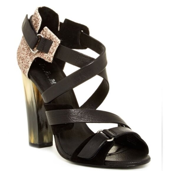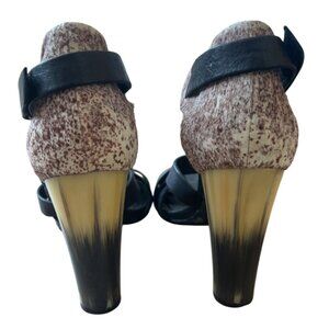 L.A.M.B. Gwen Stefani Korry Black Leather and Calf Hair heels Size 7.5