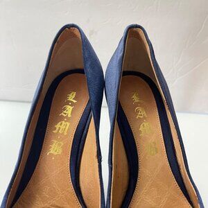 L.A.M.B. Gwen Stefani Womens Project Blue Satin Leather Platform Pump Heels 6.5. NOTE: some scuffs on toes and on side of heel, see photos. Offers always welcome!