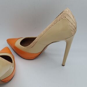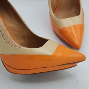 L.A.M.B Janey Mixed-Media Pump / Naked/Orange