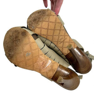 L.A.M.B. Kam Taupe Platform Slingback Wooden Heels Sandals Size 9.5