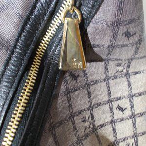 L.A.M.B Kingsvale Signature Women's Bag From Gwen Stefani. Color: Gray Ombre. Material: Coated Canvas and Leather. Light gold ton hardware. Zip Top Closure. Inside zip pouch with Logo. Black, White and Yellow Logo Stripes. Measured approx.: 17 1/2 L x 12" H x 7 1/2" W. Handel Drop: 8". Excellent condition, no scratches or scuffs, but on the bag there are very very pale spots one light blue on the back of the bag in the upper part and two light pink in the lower part in front.
