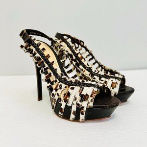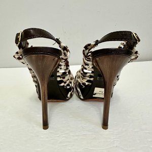 L.A.M.B. LAMB STRAPPY SLINGBACK LEATHER AND FUR STILLETO HIGH HEELS