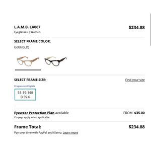 L.A.M.B Lamb Glasses Frames ONLY LA067 Clear Glitter Gold Cat Eye 51-19-140