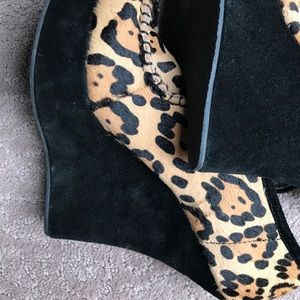 MEOW These real fur leopard print leather and suede wedge booties are AMAZING! Such a great fashion statement. Excellent condition. Looking for that shoe lover with flair to ROCK them out on the town! Size 8.5.