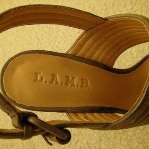 L.A.M.B. Madelle Chocolate Slingback Platform Sandal Heels Size 8M MSRP $285