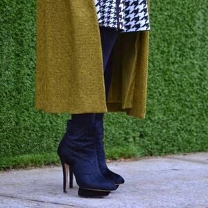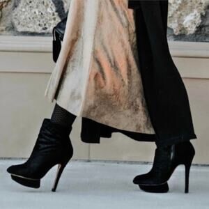 L.A.M.B Noss Mid Calf Black Fur Pedastal Platform Stilletto Boots Size 7