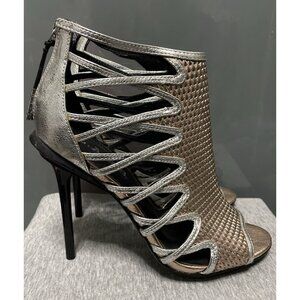 L.A.M.B. Parker Rose Gold Leather Gladiator Heels Cage Peep Toe Stiletto Size 6