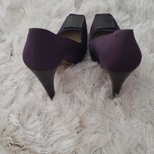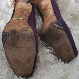 Beautiful fabric purple pumps. Great condition except for bottom (see pics). Heel height is 5", size 9.