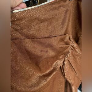 traight copper or metallic brown skirt with a bow detail on one side. skirt with a single gentle use in perfect condition