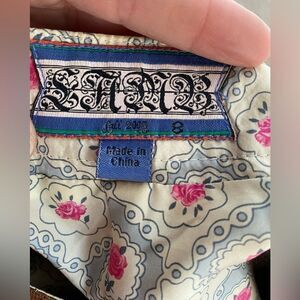 L.A.M.B. Skirt Women Sz 8 copper draped Bow Shimmer Gold Cotton Blend Straight