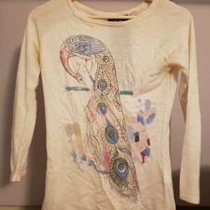 Rare Peacock cream colored cashmere / viscose blend sweater from the L.A.M.B. Spring 2005 collection.