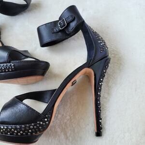 stunning heels, most likely from 2015 collection. heavy. no studs missing. 5" heel and a thick ankle strap.