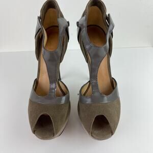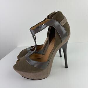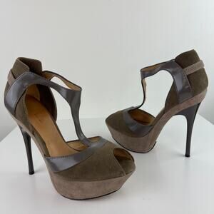 L.A.M.B Taupe Suede High Platform Stiletto Heels Ankle Strap Peep Toe Size 7.5