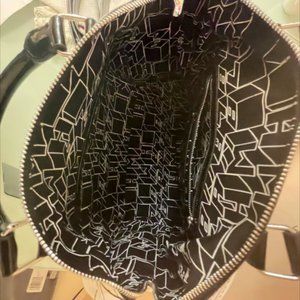 L.A.M.B. White Leather With Black Stripes & Black Studded Top Handle Satchel