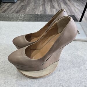 🐢 L.A.M.B. Women Novice Taupe High Wedge Slip On Size 9.5 Pumps